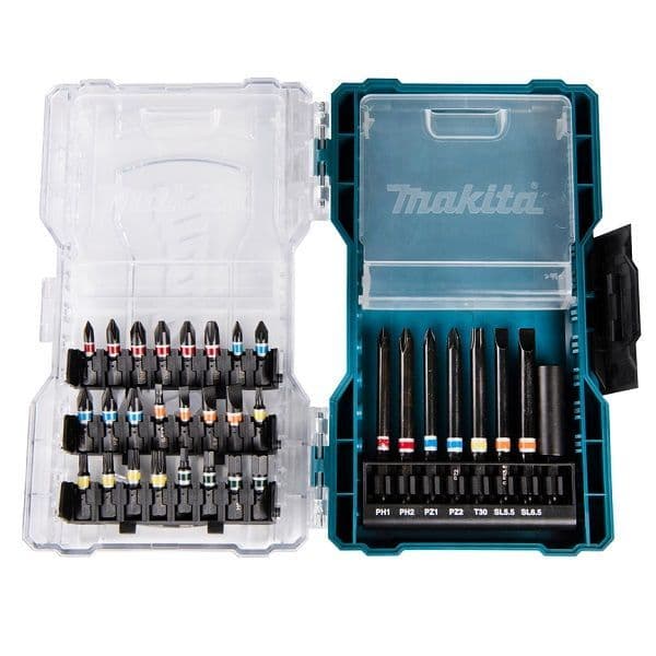 Makita 32 Piece Screwdriver Bit Set (E-07076) - Clear cover case series consist of drill bits, screw bits, and etc, applicable to multi type tasks