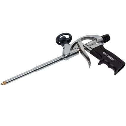 This Roughneck Contractors Foam Gun has a large, sturdy metal body with a comfortable soft grip, making it suitable for long working periods. The Foam Gun has a nickel-plated aluminium body, steel trigger, brass barrel and non-return PTFE ball. Its brass needle has a non-stick coating and an aluminium can holder adaptor.Ideal for the following applications:Filling:Gaps in brick, concrete, stone and plaster.Gaps and holes around pipe work and duct work.Spaces around window frames and door frames.Deep joints before applying plaster or sealant.Insulating:Internally for exterior walls.Soffits and barge boards.Supplied complete with:2 x long plastic extension tubes.2 x plastic nozzles.
