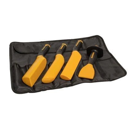 The Roughneck® Pro Lead Dressing Set is supplied in a fabric roll with carry handle. Contains the following:1 x Pro Lead Dresser No.2 is for flattening out sheet lead, copper, zinc and aluminium. Tough, impact resistant polypropylene construction ensures a longer working life and an air cushioned grip for a more secure hold and greater comfort during use.An integrated lanyard hole allows for safe and secure tethering when working at height.1 x Pro Bossing Stick made for shaping and forming sheet lead, copper, zinc and aluminium. Tough, impact resistant polypropylene construction ensures a longer working life and an air cushioned grip for a more secure hold and greater comfort during use.With integrated lanyard hole for safe and secure tethering when working at height.1 x Pro Lead Setting In Stick is for creating internal corners and folds in sheet lead, copper, zinc and aluminium. Tough, impact resistant polypropylene construction ensures a longer working life and an air cushioned grip for a more secure hold and greater comfort during use.With integrated lanyard hole for safe and secure tethering when working at height.1 x Pro Lead Chasing Wedge made for sharpening folds in sheet lead, copper, zinc and aluminium. Tough, impact resistant polypropylene construction ensures a longer working life and a soft rubberised grip for a more secure hold and greater comfort during use.With integrated hand-guard for overstrike protection and a lanyard hole for safe and secure tethering when working at height.