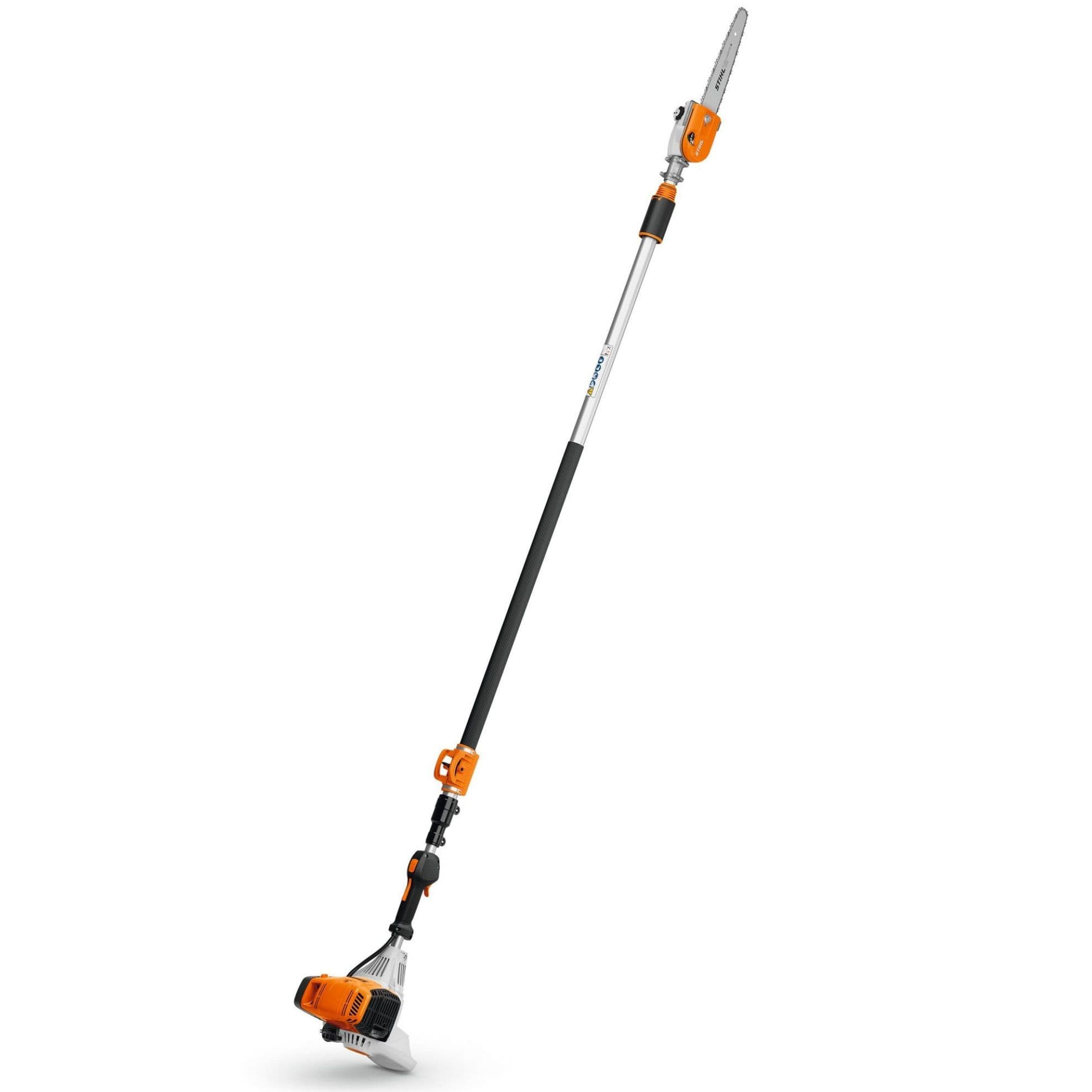 The Stihl HT105 is a high-performance telescopic pole pruner featuring a lightweight magnesium gearbox, designed to meet the demands of professional tree care and maintenance. It enables efficient pruning of trees, as well as removal of dead wood, branches, and storm damage. The machine incorporates low-emission technology and a manual fuel pump, working alongside automatic decompression to facilitate rapid and reliable engine starting.