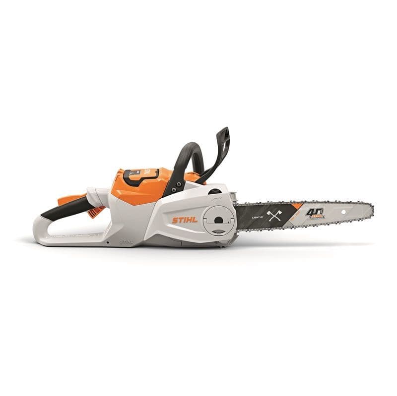 The Stihl MSA 80 battery-powered chainsaw is a powerful new addition to the AK System range of chainsaws. The first AK System chainsaw with a 14 guide bar, it has the best power-to-weight ratio in the range. Designed for private use at home, such as cutting firewood, pruning branches, wood working and felling small trees of up to 25 cm in diameter.