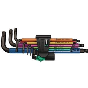 High quality L-key set with colour coded, convenient plastic sleeve. This ensures that the tool is quickly to hand and the ergonomic and pleasant handle is easy on the hands even at low temperatures. The wear-resistant clip material ensures secure storage of the L-keys as well as simple removal. The Hex-Plus profile offers a greater contact surface in the head of the screw. The notching effect is therefore reduced to a minimum and damage to the screw head more or less eliminated. The ballpoint on the long arm allows dependable working even in difficult installation situations. The BlackLaser surface treatment provides outstanding surface protection, even against corrosion, and a long service life. Laser-engraved and thereby wear-resistant size markings on the L-keys for rapid accessing.